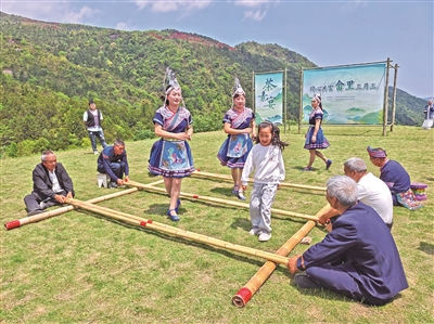 4月19日,农历三月初三,是畲族的传统佳节。在仙溪镇联红村的畲里茶园,节奏明快的畲族竹竿舞迎客,热情...