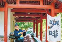 位于雁荡山灵峰景区附近,一辆改装自复古摩托车的移动咖啡车散发着诱人的香气,时不时有路人光顾...