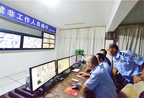 昨日,蟾东村联防队在监控室值夜班。黄瀚 摄