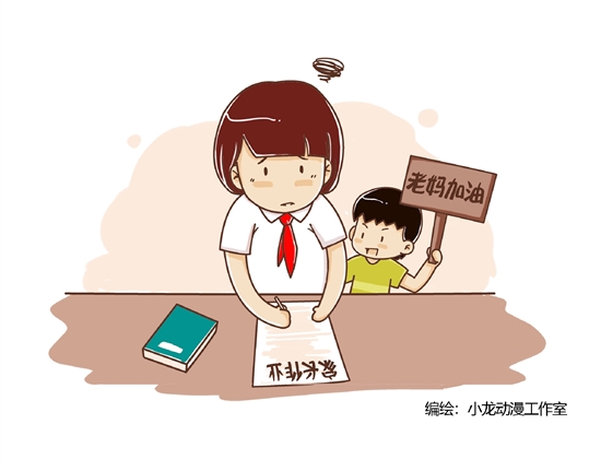 究其原因,学校、家长均有一定的责任。学校方面,剑走偏锋,过于注重分数。一些学校只着眼于短期目标的达成,执迷于学校的升学率。学校以班级排名的方式将压力传递给老师,老师以成绩排名的方式将压力传递给学生。家长在老师“命令式”的作业微信催促下,无奈“积极”配合,最后沦为老师的“附属学生”。而家长方面,虽有无奈应付的心理,但也怀揣“争宠”之心。很多家长一边抱怨,一边还是扛着压力“身体力行”地去落实各项作业指标。调查中,一名受访者表示,老师一般通过微信群安排任务,谁完成了老师交待的任务、完成得怎么样都一目了然。于是,家长们都争先恐后地完成老师布置的任务,把握各种机会讨好老师,从而希望自己的孩子赢得老师的喜欢。