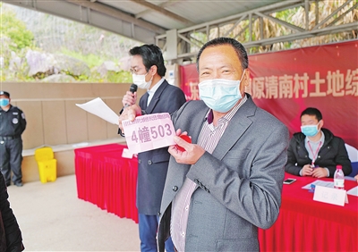 “恭喜恭喜!你家抽到的楼层很好啊!”“同喜同喜,大家都好。盼了近10年,今天终于分到房了!”昨日,乐清市清江镇原清南村土地综合整治拆迁安置公寓式住宅建设项目举行第一轮选房抽签活动。首批120户村民在清江镇人民政府、江南村(由原清南村等三个村融合)两委的共同见证下,在第三方机构的监督下,通过抽签选定房号,喜提新房。 乐清日报全媒体记者 黄瀚/摄 陈清清/文