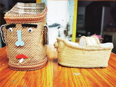 徐阿姨最让记者惊叹的是她奇思妙想、变废为宝的能力。当她拿出一个土著人造型的花盆时,一开始记者还以为是买来的,因为跟别的花盆比起来,它造型独特且材质复杂:外表是用竹子制成的,头部和颈部位置采用细绳编织,还戴着一条颇为“土豪”的金项链,很有工艺品的范儿。