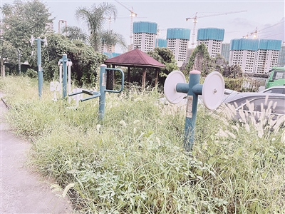 “好一阵没来,没想到现在草都长得这么高了。”“我前一阵还和我女儿说不要往草里走,万一遇到蛇就危险了。”“草长得这么高,谁敢踩进去,白白浪费了这些器材!”路过的几名市民直呼可惜。
