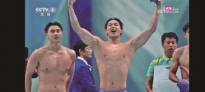 这段画面是9月28日晚,当洪金权和队友们在亚运会男子4×100米自由泳接力决赛中夺冠时庆祝的场景。当晚,由潘展乐、陈俊儿、洪金权和王浩宇组成的中国队在男子4×100米自由泳接力决赛中,以3分10秒88的成绩夺得冠军,并打破了亚洲纪录。