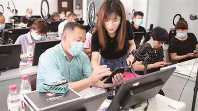 电商培训师指导农户学习新技能。乐清市农广校供图