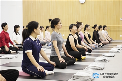 11月3日8时30分,伴随着轻柔的音乐,瑜伽理疗班迎来首堂课。宽敞的教室里,老师早早准备好了瑜伽垫、小毯子等用品,学员们平躺在瑜伽垫上,跟着张誉凡老师的指令,放松、呼吸、调整动作……