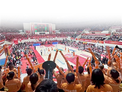 尽管此次温州球迷助威团在看台区域,但这并没有削弱球迷们的热情。他们肩并肩站在一起,用整齐划一的呐喊、不停挥舞的橙色围巾,硬是在台州的体育馆里喊出了浙C敢拼敢闯的气势,打造出一片动人的“橙色海洋”。比赛有终场,情谊无边界。