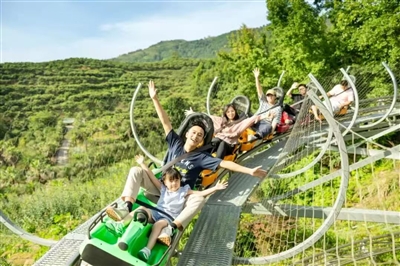 山地滑车:全长2000米,垂直落差200米,连续弯道22个,在蜿蜒的山路上尽情驰骋,感受速度与激情的碰撞。