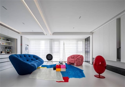 装修用了7个月时间,花费了80多万元,房子的整体风格是极简纯白的多巴胺风,搭配红、黄、蓝等各种设计感较强的沙发、落地灯等元素来进行点缀搭配,全屋采用小米智能化家居系统,整体空间不仅有层次感,且风格小众有格调。装修完工后,林浩文陆续接待了同小区10来户准备装修的邻居来参观。