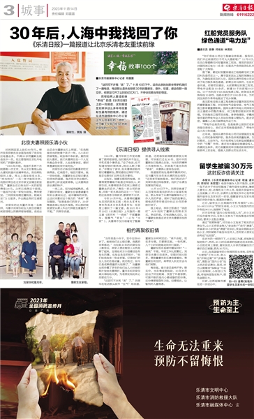 2023年11月10日下午,一通跨越千里的电话,让远在北京的刘荣华与失联30年的乐清老友董献生重新取得联系,并相约一定要再次相聚。