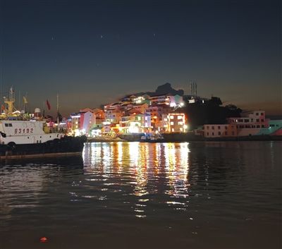 过桥穿过东海村,就到了七彩小岛小箬村,它三面环海。这个渔村的渔民为了改善居住环境,同时发展旅游,将自家的房屋经设计后用各种鲜艳的色彩粉刷,形成了马卡龙色系、莫兰迪色系等多种风格,错落有致地分布在山坡上,与蓝天碧海构成了一幅绝美的图画。漫步村中,仿佛置身于童话般的彩色王国。夜色笼罩,月上渔港,七彩小岛灯火通明,显得七彩斑斓,更是蒙上了一层神秘的色彩。