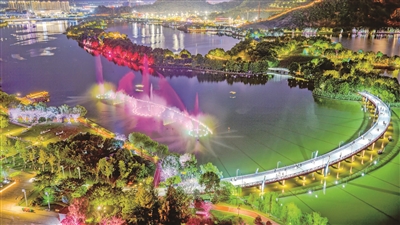 天气转凉,正是漫步赏夜景的好时节。当夜幕降临,华灯初上,市区清和公园换上与白天截然不同的梦幻衣裳,成为市民和游客晚间休闲游玩的好去处。