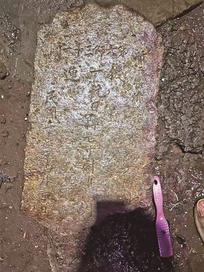 “担心损坏设备,父亲立刻熄火,换用铁锹小心翼翼地向下挖掘。”朱海说,随着泥土被一点点清理,一块石碑的轮廓逐渐清晰。抹去碑上的泥土,一行行刻字显露出来:“第六师三十一团抗日阵亡中尉排长胡定元,民国二十七年四月四日,浙江乐清县大?石壇村”。
