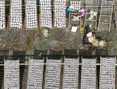 渔民晒鱼忙。蔡宽元 摄