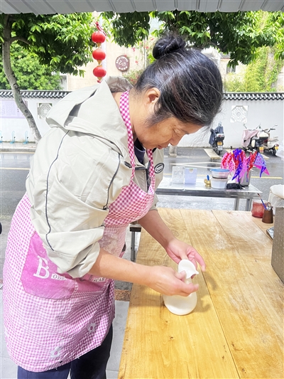 2018年,郑记糖松糕店被认定为金溪社区米塑非遗传承点,这个转变让这家老店承担起更广泛的文化传承责任。从那以后,小小店铺迎来一些特殊访客,有周边学校组织的中小学生,有社区老年大学的学员。针对不同人群,郑乐剑设计了不同的体验课程:孩子们学习制作简单的花朵造型,老人则学习传统年糕的制作。“最重要的是让年轻人知道,我们本地的饮食文化有多深厚。”郑乐剑说。