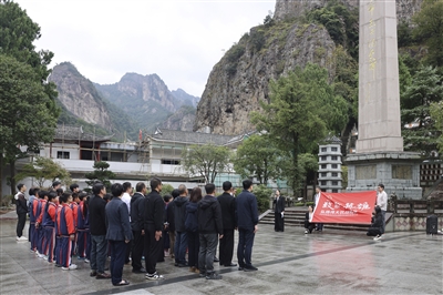 仪式现场,敬意汇聚。中共乐清市委宣传部、乐清市精神文明建设指导中心、乐清市委党史研究室、乐清市退役军人事务局、雁荡山革命烈士陵园管理处、雁荡镇雁青宣讲团等单位工作人员,乐清市融媒体中心党员、记者,以及“全国最美家庭”“温州好人”代表包建武、“浙江好人”“温州道德模范”杨丽珍、“乐清好人”倪蜀蒙和黄嫣然等先进典型,皆以庄重姿态肃立,静静等候仪式开启。雁荡一小近50名学生身着整齐校服,脊背挺得笔直,清澈的眼眸里满是对英烈故事的期待。