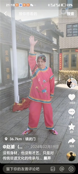 服装和道具到货当天,他便火速换装:盘扣系得整整齐齐,花白假发套戴得丝毫不差,手握木质拐杖,佝偻着背就往蒲岐街上“晃”。那颤巍巍的步态、不经意间的抬手,活脱脱一副老太太模样,竟无一人识破这“伪装”,就连一老邻居走在旁边也没出认出他:“这老人家奇怪,我走哪,‘她’跟哪,看着怪糊涂的。”后来他逛到常去的手机店,老板起初满眼新奇:“哟,老人家也来选手机?”越看越觉得眼熟,才猛地拍腿惊呼:“这不‘油汤’嘛!”说着便掏出手机,记录下这充满“反差萌”的瞬间。没过几天,他又顶着“赵婆”的装扮,和邻居们唠了半个多小时家常,大家始终没察觉,眼前这位“老太太”,就是隔壁那个爱开玩笑的赵国忠。