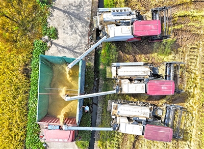 眼下正值晚稻收割季节,乐清各地农户抢抓晴好天气,加紧抢收陆续成熟的晚稻,田野间呈现出一派繁忙的丰收景象。