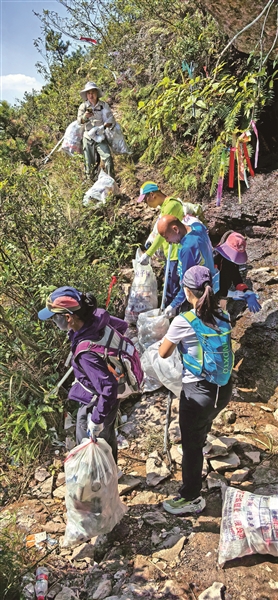 “自2016年协会成立后,登山清卫便成了我们每年都会多次开展的固定行动,前三年持续清理后,山上的垃圾越来越少,我们才减少了频次。”黄玉霞说,2023年、2024年净山时垃圾量也不多,没料到今年仅踏访三座山,垃圾竟暴增至往年数倍,这样的反差让深耕环保多年的志愿者们既焦急又痛心。