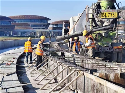 连日来,在市区胜利塘区域,总投资约4.72亿元的乐清市海塘安澜工程(中心区海塘)正全速推进。施工现场,一辆辆工程车往来穿梭,百余名施工人员奋战在各自点位,抢抓雨水少、潮位低的利好天气,同步进行塘身填筑与防浪墙混凝土浇筑等作业,一派紧张有序的繁忙景象。