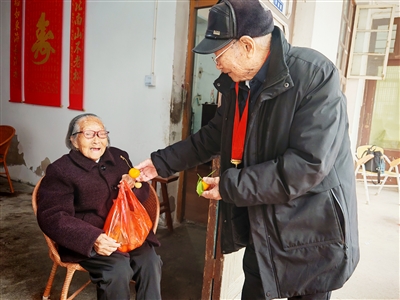 “这是我刚买回来的水果,你快尝尝!”临近中午,家住虹桥镇西塘村里弄巷华南路的百岁老人杨顺水迈下三轮车,提着一袋新鲜水果慢悠悠走到家门口。见老伴谢花娒正惬意地坐在家门口晒着冬日的暖阳,他脚步轻缓地凑上前递过袋子。老伴笑着伸手在袋中挑了个饱满的蜜桔,又反手塞到他手里:“你也来一个!”