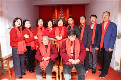在现场,杨顺水的小女儿杨香迪翻出手机里的视频,给记者细数去年正月初八为父母操办百岁寿宴的热闹光景。那日,在喜庆的礼炮声中,6位子女携一众孙辈列队祝寿。膝下儿孙绕膝,满堂喜气盈门。那天两位老人笑盈盈地递出140余封红包。喜宴上,乡邻亲友齐聚一堂,举杯同贺,暖意满盈。