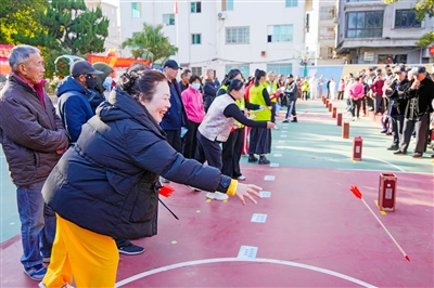 比赛中,“四平八稳”“投壶”“旱地冰球”等项目精彩上演。选手们全神贯注、互相鼓励,在轻松愉快的比赛中强身健体、交流互动,展示了乐清老年人“老有所乐、老有所为”的精神风貌。