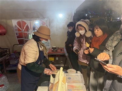 “来来来,尝尝松软可口的状元松糕!”昨日20时许,在乐来乐好·2026乐清新春灯展的舞台正对面,炊烟袅袅,腾起的热气裹着甜香,为寒夜添上一缕暖意。