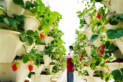 时下,清江镇北塘村智能温室大棚内种植的草莓陆续成熟,开始采摘供应市场。该智能温室草莓大棚应用了立柱、高架、气雾等栽培模式,调控出适合草莓生长的湿度和温度,培育的草莓口味好、产量高,还方便采摘。