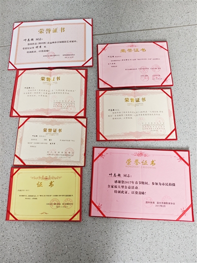 部分获奖证书。