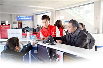 仪式结束后,志愿者们迅速投入服务,在车站内开展秩序引导、行李搬运、咨询答疑等便民服务,为旅客出行提供便利。