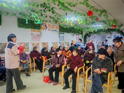 当记者来到二楼失智老人照护区时,欢快的音乐随风飘来,数十位老人正跟着护理员欢快地做早操。为延缓老人认知衰退、留住鲜活活力,该中心定下一条“铁规矩”:除身体不适需卧床休养外,白天绝不允许老人久卧不起。周一至周日,每日活动排得满满当当:清晨9:00-9:30,准时齐做早操舒展身心;午后14:00-15:00,每天开展不同主题的互动趣味游戏,日常更融合运动疗法、五感疗法、作业疗法、认知训练、音乐疗法等多种专业方式,用心守护老人的身心健康与认知活力。