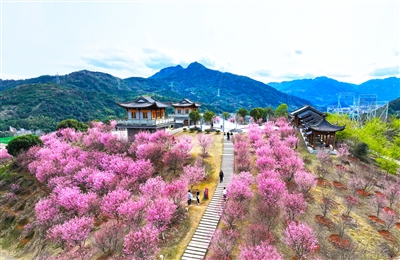 连日来,随着气温逐渐回暖,乐清各地春花竞相绽放,呈现出绚烂的春日盛景。图为淡溪镇马岙漫山樱花盛开。