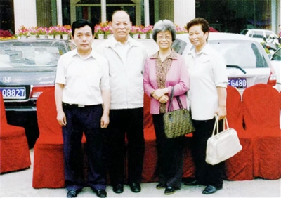 潘教武与原国家民航局副局长徐柏龄(左二)在沪川大酒店合影。资料图