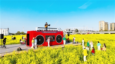 如果说主会场是热闹的狂欢场,那分会场则藏着乐清春天最温柔的浪漫。稻田收音机、粉色小提琴、环游飞行屋……一组组网红打卡装置错落分布,在金色花海的映衬下,宛如一幅流动的田园画卷。不少游客停下脚步,拿起手机在花间定格瞬间,欢声笑语在花海间回荡,让春日氛围更加甜蜜温馨。