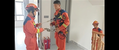穿齐装备,准备“空降”。消防供图