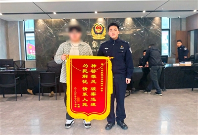 6小时后,陈某被成功抓获,被盗的15部手机、7部耳机以及一些手机配件悉数追回。手机店主林先生林先生将绣有“神警雄风破案神速为民解忧情系百姓”的锦旗送到派出所,向陈皓泽表达谢意。